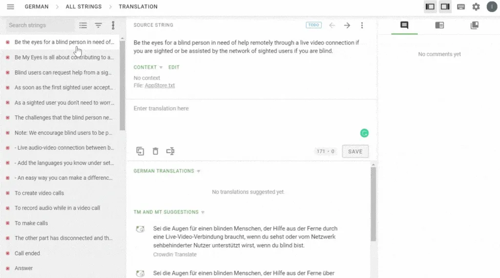 • Uploading screenshots of the used strings to the localization project.